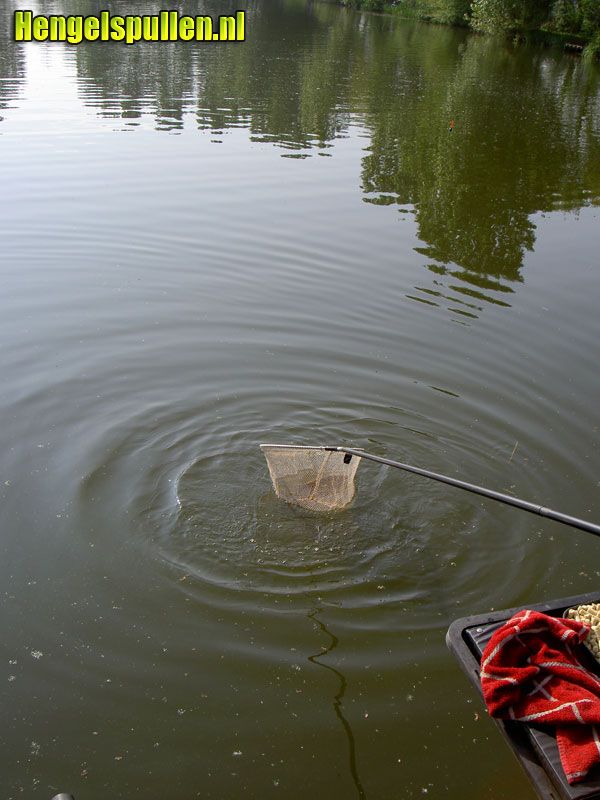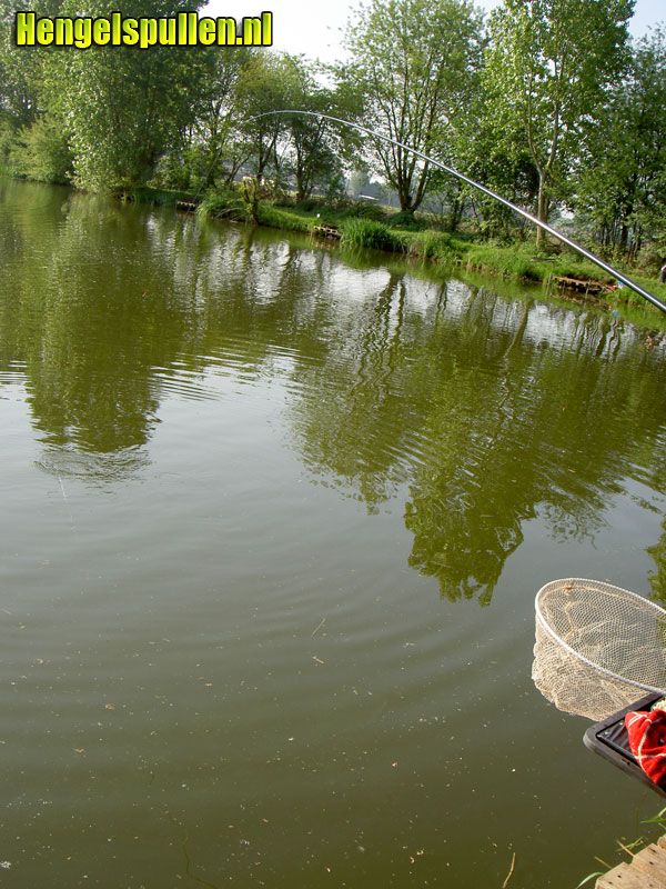 Eenmaal alles opbebouwt en de lijn secuur uitgelood, begon ik mijn sessie. Na het voeren van wat pellets en mijn haakma's van een ontiegelijk stinkend smeerseltje te hebben voorzien, was het wachten. De fel oranje antenne stond een kleine centimeter boven het wateroppervlak. Het was wachten op de eerste aanbeet. Voorzichtig ging de antenne heen en weer, de eerste karper had zich verraden. Na twee ' drie voorzichtige aanbeetjes verdween de antenne onder water. Nog voor de lijn strak liep had ik mijn eerste karper gehaakt. Tjonge wat een run! Die explosie en aansluitend de dril; in een woord prachtig! Nog trillend van de endorfine, ging ik voor mijn tweede, derde, vierde'.'(zucht)''. wat een water.