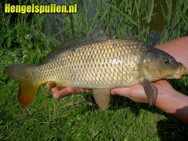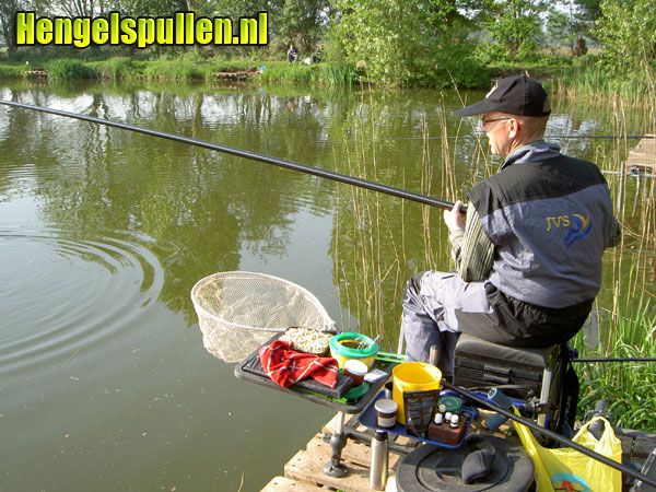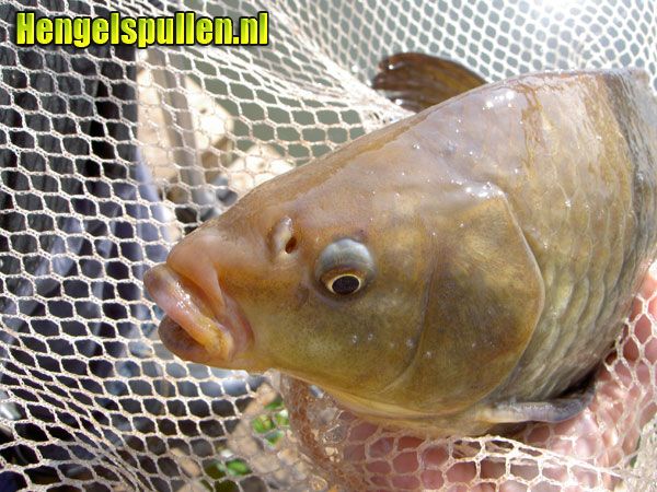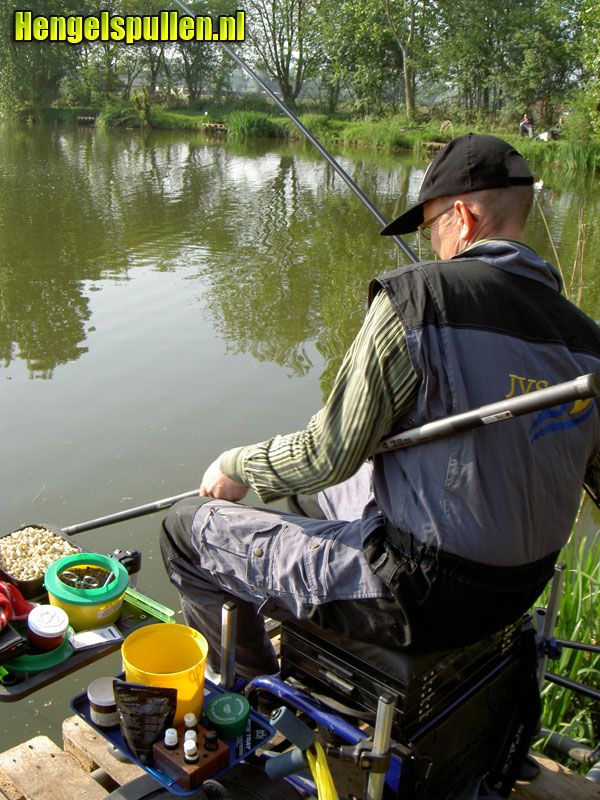 Na een aantal tuigjes te hebben gemaakt ( 3 'inline'en 3 'normaal'), was het zover. Met een blikje zoete ma's, een blikje erwten (moet u ook eens proberen!) en wat pellets vertrok ik richting Nijnsel. Het water lag als een spiegel zo glad. Tijdens het opbouwen van mijn kist werd ik verrast door een pracht karper welke zo halverwege de vijver voor meer dan de helft uit het water kwam. Je rook ze gewoon die biggen, tjonge wat had ik er zin in.