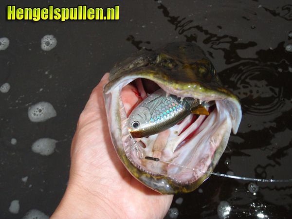 De nieuwe BBZ-1 4' (vier inch, dus zo'n tien centimeter) Shad van de firma Spro is verkrijgbaar in een kwartet attractieve kleuren, met tot de verbeelding sprekende namen; Blue Back Herring, Natural Shad, Dirty Shad en wat te denken van Sexy Lavender Shad... Sexy kunstaas, ja, ja, ja, het is me wat... Staart en vinnen zijn gemaakt van zacht plastic om het kunstaas n't dat kleine beetje extra geloofwaardigheid mee te geven. De BBZ-1 bestaat uit vier componenten en zwemt perfect, zonder lip, het is dus geen plug, maar een swimbait. In beweging haast niet van een echte vis te onderscheiden. Je kunt hem in rechte lijn terugvissen of meer schoksgewijs in wisselend tempo. Er is een drijvende variant, een snel zinkende en een langzaam zinkende. Die laatste heeft bij mij de proeve der bekwaamheid met vlag en wimpel doorstaan, in de kleur Blue Black Herring, waarbij niet onvermeldt mag blijven dat alle vier de varianten er fantastisch en vooral realistisch uitzien. Om op dat laatste voort te borduren, ik vis graag met aasjes die echt lijken. Dat schept vertrouwen, althans bij mij. Ook heb ik nogal schrik van fors aas. Welnu, met zijn tien centimeter en een zwaarte van 28 gram is dit een bescheiden aasje qua verschijning, bij uitstek geschikt dus voor de zomer en vroege herfst op niet al te wijds water. De BBZ-1 is uitgerust met ''n dreg, maar dat volstaat voor zijn formaat en scheelt bij het onthaken. Wanneer een snoek furieus over dit aasje knalt en diep is gehaakt (zie foto), is het door de enkele dreg toch eenvoudiger te onthaken, dan wanneer dit aasje toegerust was met twee dreggen. Hulde hiervoor! Dit aasje laat zich aan een niet al te zware baitcaster perfect vissen. Succes kan eenvoudigweg niet uitblijven. Wie er veertien euro voor over heeft komt in bezit van een vangend aasje, dat zich op juist afgestemd materiaal (een lichte baitcaster, of anders een medium spinhengel) prima laat vissen.