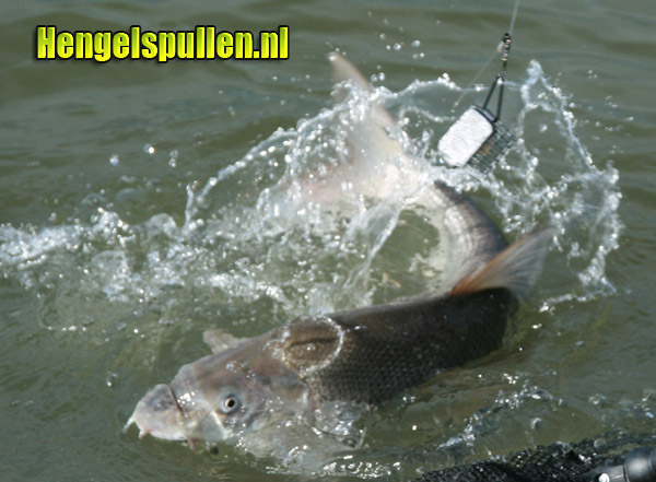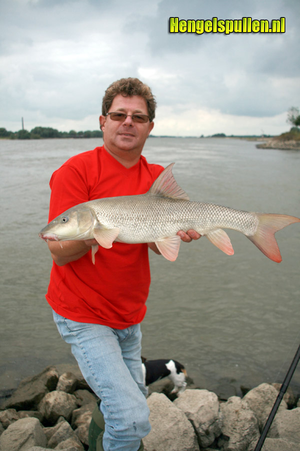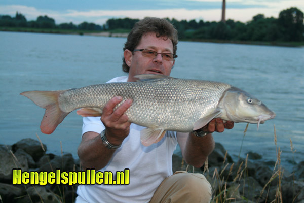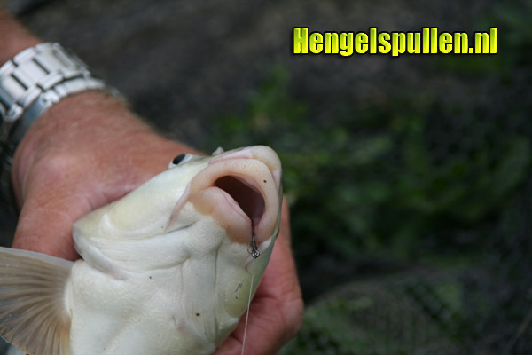 En dus kreeg ik de serie 3510-Bn van hem. Het is een iets dikkere haak dan ik gewoonlijk gebruik. De volgende morgen heb ik direct de haken geprobeerd. En ondanks het verschil in dikte van de haak, heb ik verder geen verschil in vangsten gemerkt die dag. En ook niet de daarop volgende sessies. En zo verstreken bijna 2 weken. Toen kreeg ik een telefoontje van diegene die me de haken bezorgd had. Of ik verschil merkte. "Nee" zei ik, "of het moet zijn dat deze haak makkelijk onthaakt". "Kan wel kloppen", hoorde ik aan de andere kant van de lijn, "dit zijn haken zonder weerhaak". De eigenaar van de hengelsportzaak kwam er per toeval achter dat hij de verkeerde haken had gekregen. Ook hij had ze niet gecontroleerd. En wij twee'n hadden ook niets in de gaten! En zo vis ik momenteel dus met weerhaakloze haken! Wie had dat ooit nog gedacht. Maar omdat ik ze onwetend ruim 2 weken had gebruikt en geen bezwaarlijke verschillen had bemerkt, was ik ongemerkt om gegaan. Ik kan ze nu iedereen aanbevelen. Het onthaken is een fluitje van een cent. En mijn grootste bezwaar, dat een vis zich makkelijk kan onthaken tijdens de dril, daar heb ik tot nu toe nog helemaal niets van gemerkt. Gewoon een kwestie van de lijn strak houden. En zelfs dat is niet altijd nodig. Vaak duikt een barbeel tijdens ''n van zijn runs langs stenen en probeert op die manier te ontsnappen. Het komt dan wel eens voor dat de voerkorf achter de stenen blijft hangen en je een vastloper hebt. Op zo'n moment gooi ik mijn molen open en wacht rustig tot ik de vis weer voel zwemmen. Meestal tijdens de zuiging van een schip komt het hele zaakje weer los. En ook dan zit de barbeel er nog gewoon aan. Zonder weerhaak. Zo zie je maar, toch nooit te oud om ook een denkwijze te veranderen.
