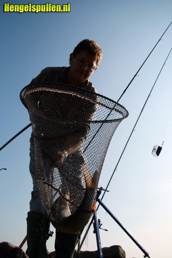 Het lopende jaar (2008) overkwam me dit meerdere malen. Er wordt nu ook veel meer op barbeel gevist, dus kom je nu ook meer beschadigde vissen tegen met een gescheurde vin. Maar ook via mijn telefoon, email en op forums kwamen een kleine tiental meldingen binnen van andere barbeelvissers. Toen half september mijn schepnet kapot brak, ben ik meteen naar een ander op zoek gegaan. In de hengelsportzaak adviseerde ze me om een latex gecoat net te nemen. Ik had hiervan nog nooit gehoord en was blij verrast met deze mogelijkheid. Deze worden al gebruikt in de karpervisserij. Het schepnet was ideaal, 70 cm in doorsnede en ruim 60 cm diep. Helaas zat aan het net een steel vast, van amper 1,5 meter lang. Het schepnet was niet los te draaien en navraag van de winkelier leerde ons dat de netten niet los verkrijgbaar waren, volgens de verkoper.