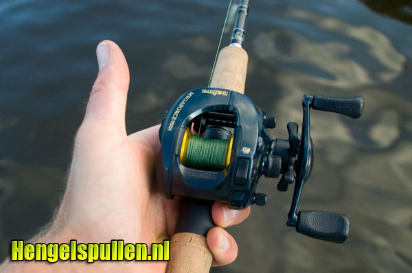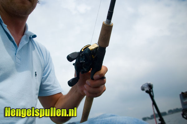 Natuurlijk heb ik deze baitcaster reel ook ingezet tijdens mijn favoriete visserij: het jerkbaitvissen. Tijdens dit vissen ligt de reel prima in de hand. De lijn komt netjes van en op de spoel. Ik heb de reel op een CJW light jerkbaitstok, een CJW medium heavy jerkbaitstok, een PML Buster Jerk 80gram en een Fox Jerkbait 35-40gram gevist. Respectievelijk heeft de lichte jerkbaitstok een dunnere gevlochten lijn als de PML 80 grams hengel. Het lekkerst vind ik de reel vissen op de Fox en de C.J.W. Medium Heavy. Met deze 2 hengels vis ik met de gemiddelde kunstaasjes (40 - 60 gram) en een 18.00mm Power Pro gevlochten lijn.