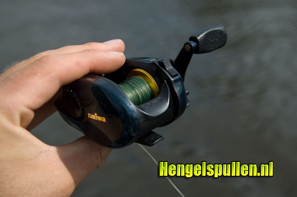 De reel ligt goed in de hand.