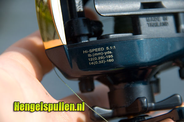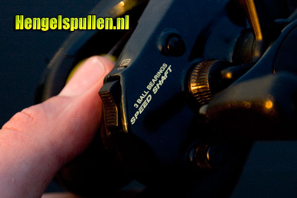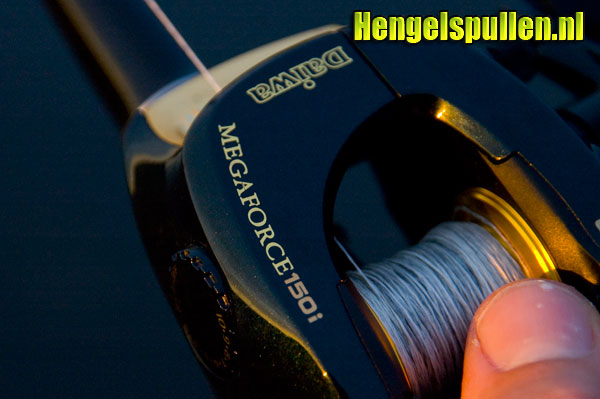 Het eerste wat opvalt aan dit zwart gouden reeltje is dat de slinger aan de rechterkant zit. Voor mij als linkspoot is dit een voordeel. Het betekent dat ik dit reeltje perfect kan gebruiken voor het jerkbaitvissen. Aangezien ik links ben, gaat de jerkbeweging met mijn linkerhand net iets beter dan met de rechterhand. Een ander heugelijk feit is het 'Daiwa Speedshaft System'. Het Speedshaft systeem maakt het mogelijk lijn te geven als je de vrijloopknop ingedrukt houdt. Als je de vrijloopknop loslaat, stopt de reel met lijn geven. Dit Speedshaft systeem werkt hetzelfde als de flippin knop op de Daiwa Bayard. Je kunt door de 'flipping selector' het speedshaft systeem aan- of uitzetten. Het flipping selector knopje is makkelijk door je vingers te vinden. Hierdoor heb je met 1 hand een grote controle over je aaspresentatie. De Megaforce is helaas niet voorzien van een twitchin bar, zoals we dat op de Daiwa Viento kennen. De Twitchin bar maakt het mogelijk met dezelfde hand als waarmee je je hengel + reel vast houdt, lijn binnen te 'twitchen'. De overbrenging van de Megaforce is 5.1:1. Dit betekent dat in 1 slingerdraai de spoel van de reel 5.1 maal ronddraait. Bij de Bayard is dit 5.8:1. De Bayard haalt dus net iets meer lijn binnen dan de Megaforce.