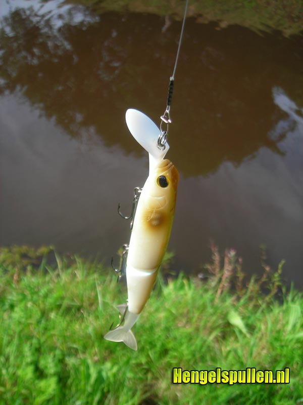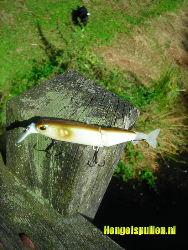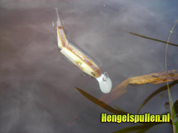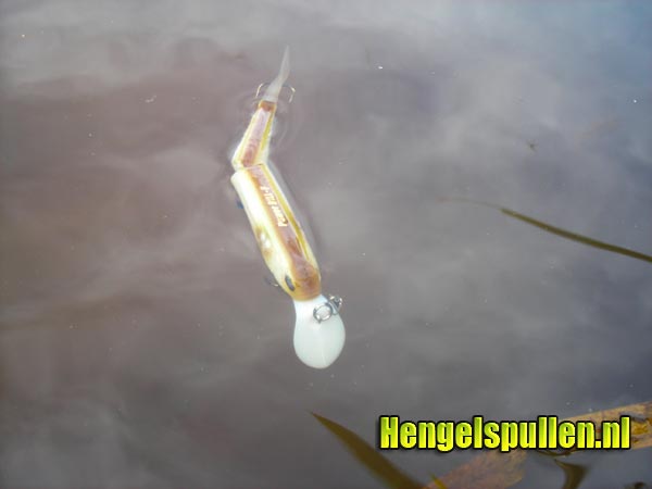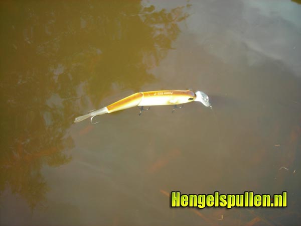 De Power Bill is te gebruiken als crankbait, je vist 'm dan in ''n tempo thuis en hebt dan de Japanse variant van de J11 in huis en een gegarandeerde vanger. Vis je 'm alleen op deze wijze, dan is dat jammer, want de Power Bill heeft meer in huis. Mijn favoriete manier is even versnellen, even stil laten vallen, waardoor deze floating minnow, drijvend visje dus, naar boven waggelt, tot vlak onder de waterlijn en weer een versnelde tik, je zou de beweging jerking light kunnen noemen. Een onvermijdelijk aasje? Nee! De Power Bill is niet goedkoop, voor dezelfde pegels heb je twee Rapala's, maar het is maar net waar je voor kiest. Met de Power Bill heb je wat exclusiefs in handen, een niet-alledaags kansrijk aasje, waar het met een spinstok van rond de 15 gram leuk en prettig mee vissen is in de bovenste waterlaag en ondiep water. Het is zijn veelzijdigheid die 'm uniek maakt en wat de uitvoering betreft, dan kun je gerust aan die Jappen overlaten, de Power Bill is een stuk topdesign. Nadeel is de dubbele haak, welke achterop het aasje is gemonteerd. Af en toe slaat het staartje daar in, niet onoverkomelijk, de actie wordt slechts iets introverter. Voor een door mij gehaakte snoekje was het in ieder geval geen reden om dit snoepje aan zijn neus voorbij te laten gaan. Toch heb ik deze dubbel haak verwijderd, omdat twee dreggen voor een aasje van dit formaat naar mijn idee volstaan ' daar komt mijn neiging tot manipulatie weer om de hoek kijken. Voor wie uit is op apart spul, maar wel zijn visje wil vangen is de Power Bill een aanrader voor weteringen, poldervaarten en niet al te diepe kanalen en vijvers, overtuig uzelf' De door mij geteste variant is bruin/wit van kleur, de Bone AYU, maar deze verleider is verkrijgbaar in meerdere 'jasjes', check daarvoor www.rixhengelsport.nl.