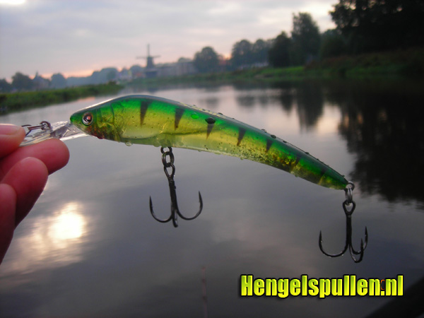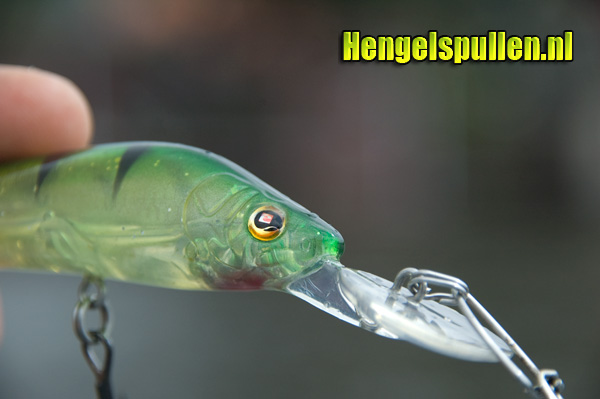 Zo kocht ik voor een prikkie een leuk houten doosje met Palmers, niet om daadwerkelijk met de vliegenlat mee aan de slag te gaan, maar puur voor de heb. Op datzelfde kraampje stond een glazen bol, gevuld met vloeistof en een plastic sneeuwpop. Ik kende dat ding, hield 'm op de kop en zette hem weer neer, waarna witte glittertjes naar beneden dwarrelden, of was het sneeuw. Het kan niet anders of Patrick S'bile moet dat prulletje ook kennen vanuit zijn kinderjaren, was mijn eerste gedachte. De Fransoos werd onderzoeker en deed dat onder meer naar het gedrag van rovende vissen. Daarnaast had Patrick een avontuurlijke geest, was continu op zoek naar nieuwe uitdagingen en mag graag een hengeltje gooien. Zijn drang tot knutselen, gepaard aan jarenlange ervaring leidde tot een eigen lijn van innovatief kunstaas. Dat ie zijn naam koppelde aan zijn producten is logisch, zo ontstond S'bile. Albatros is de dealer van deze via Amerika op de markt gebrachte juweeltjes (zie www.sebileusa.com). Mij werd gevraagd wat ik vond van ''n van die S'bile'tjes, de Koolie Minnow BRL in de variant Perchy. Eerst de kille cijfers: 12 cm lang, 22 gram, slank postuur en voorzien van baarsmotief. BRL staat voor Big Round Lip, hetgeen impliceert dat dit type tussen de 1.20 en 2.50 meter diep loopt, en floating, drijvend dus. Tot zo ver weinig nieuws onder de zon, twaalf in een dozijn, maar nu komt het, bij nadere beschouwing komt het raffinement bovendrijven. Neem het 'sneeuweffect', het doorzichtige ranke lijf van de Perchy is voorzien van vloeistof met glitters. Een gewond visje op de vlucht verliest schubbetjes, eenzelfde effect wordt verkregen na een vinnig rukje aan de hengel, waarbij de Perchy vooruitschiet, juist, gelijk een vluchtend, gehavend visje dat schubbetjes verliest. Bijkomen voordeel is dat de vloeistof zich bij het werpen verplaatst van voor naar achter, met een long cast-effect tot gevolg. Goochem ventje, die Patrick. Subtiele details zijn verder het rode kinnetje en de bloedrode ogen in 3D. Dit alles met elkaar maakt dat ik reeds op het eerste gezicht vertrouwen heb in dit aasje. O ja, bijna vergeten, de Koolie heeft inpandig twee loodkogeltjes, die door hun situering in de vloeistof met glitters lagere tonen afgeven dan andere pluggen met ratel. Ook hier dus weer net even anders dan anders.