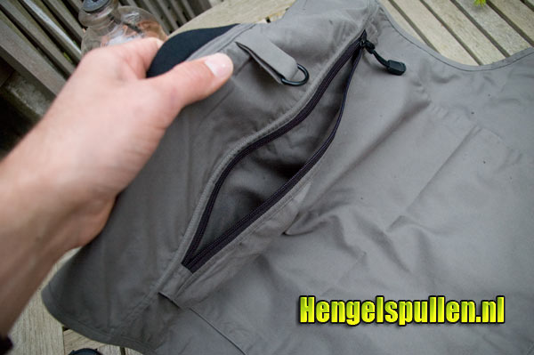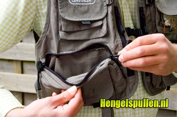 In de praktijk bewijst dit vest goede diensten. De hengel zit in de hengelhouder.