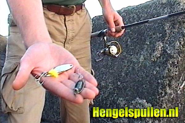 Vissen met een lepel. De actie breng je in je kunstaas door een op- en neergaande beweging. (foto is uit de binnenkort te verschijnen DVD van hengelspullen.nl)