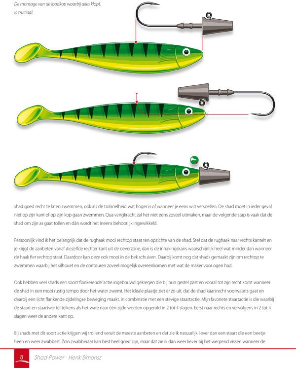 Werpend vissen, trollen, backtrollen, diagonalen, combishotten, verticaalvissen en dropshotten, vrijwel alles kan met dit rubberen kunstaas en komt in dit boek aan bod. Dus ook de verschillen in vorm en actie, het materiaal, dressuur, kleuren en geuren. Succesvol vissen op roofvis is topsport, het vergt het uiterste van zowel het materiaal als de mens en niet zelden bepalen details het succes. Een intrigerend boek met verrassende ontdekkingen, vol prachtige fotografie en met gedetailleerde tekeningen van Andy Steer. Een leesboek 'n naslagwerk.