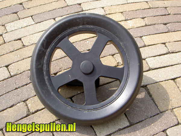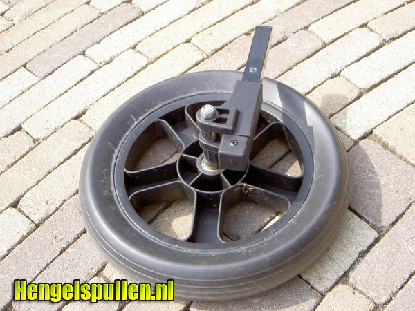 'Het wiel en de band zijn van stevig slijtvast kunststof gemaakt (massief, gaat nooit lek of leeg!).